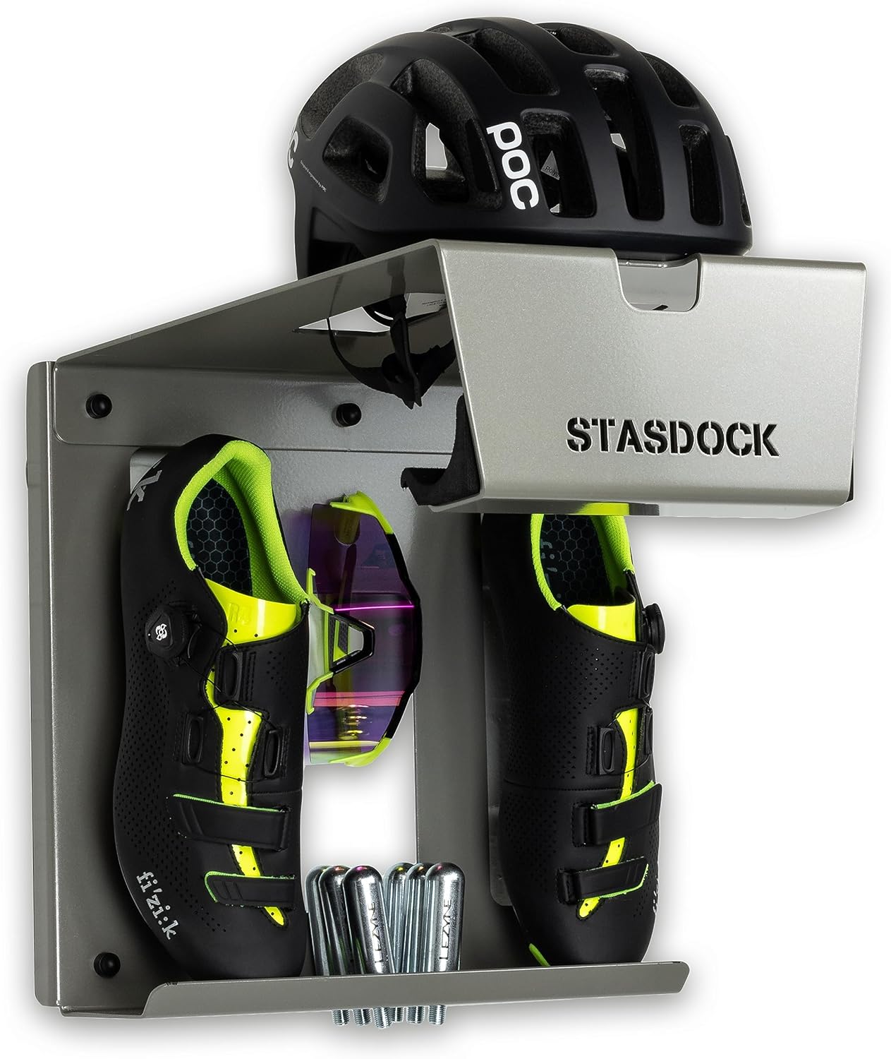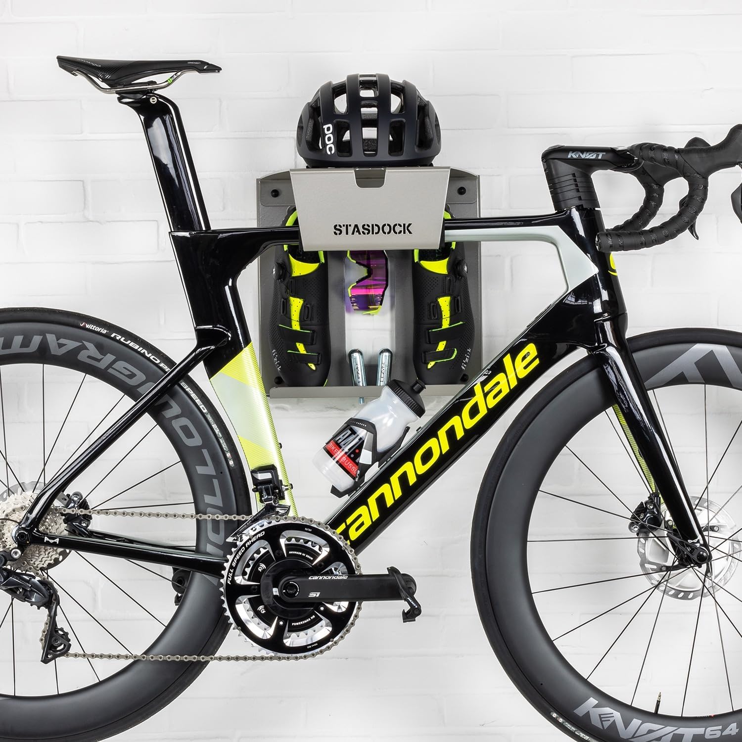 - ✔ DESIGNFUL WALL BIKE RACK: Maximize your home or garage space with the Stasdock wall bike rack - designed to securely store your racing bike and its accessories such as shoes, helmet, glasses, and CO2 cartridges.