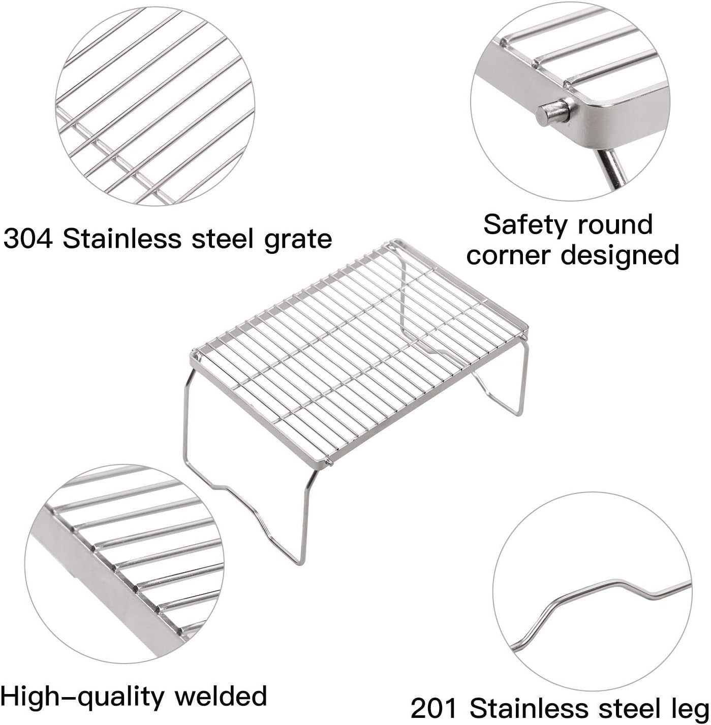 - HIGH QUALITY MATERIAL: The over-the-fire camping grill is made of 304 stainless steel grate and the legs are made of 201 stainless steel. This helps the grill resist oxidation and corrosion. Stainless steel also makes it lighter and more durable than iron.