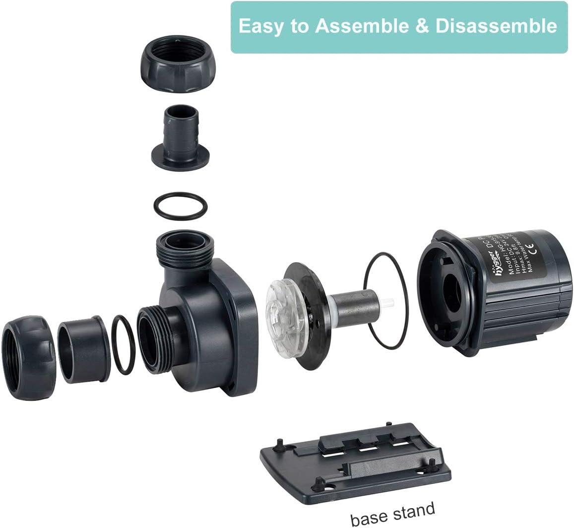 - đ ăInternal & External Useă Hygger dcp water pump can be ran externally or be submerged. Please note the controller is not waterproof, must be placed indoors.The water pump inlet and outlet ports with standar size threads, it comes with screws, o rings, pipe connection fittings.You can connect 1", 3/4", 1-1/2", 1-1/4" pipes to the pond pump