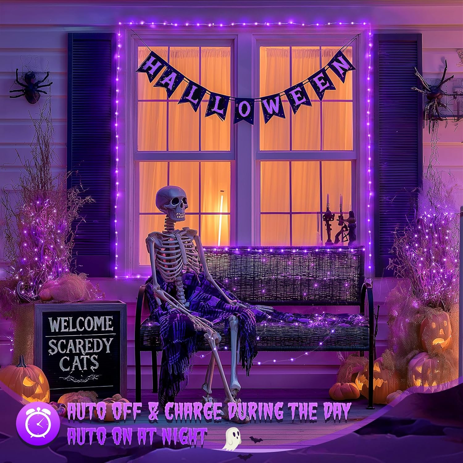 - AUTOMATIC SWITCH SOLAR HALLOWEEN LIGHTS: Halloween fairy lights powered by solar energy, working up to 8 hours after 8-12 hours fully charged. Lights up automatically at night and off during the day.