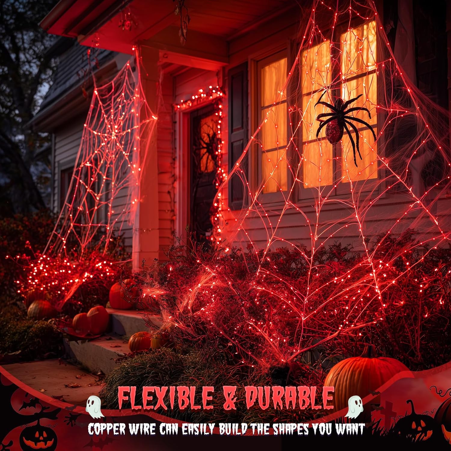 - 【FLEXIBLE & DURABLE RED LIGHTS OUTDOOR】You can bend the flexible silver wire into a heart shape or pentacle and you can wrap the halloween solar lights around tree trunks or gazebos. Solar fairy lights will not overheat after being used for many hours, durable, and safe to use.