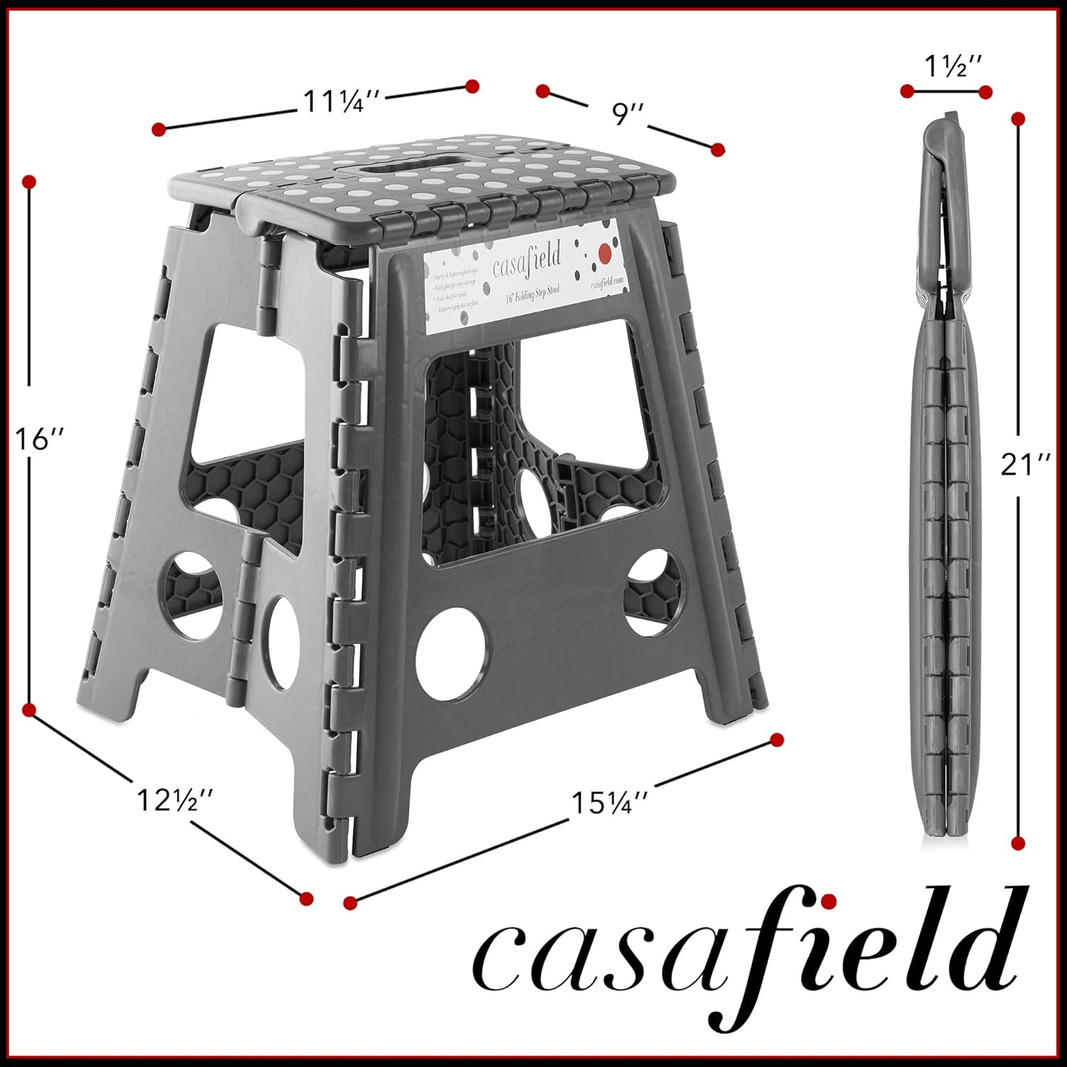 - Sturdy, lightweight design: Always have a stool handy with this small but mighty folding step stool from Casafield. Crafted from heavy duty plastic and weighing just over 2 pounds with a maximum standing height of 16", this stool easily supports up to 300 pounds.