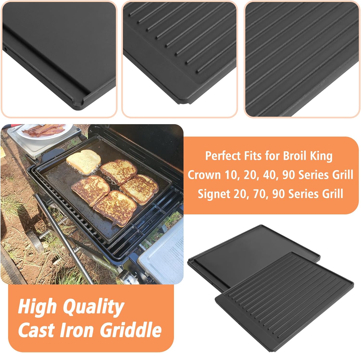 2-in-1 Reversible 15” x 12.8” Pre-Seasoned Cast Iron Cooking Griddle for Gas Stove/Charcoal/Electric/Propane/Gas Grill, Flat Griddle Top Plate for Broil King Crown and Signet Series Grill