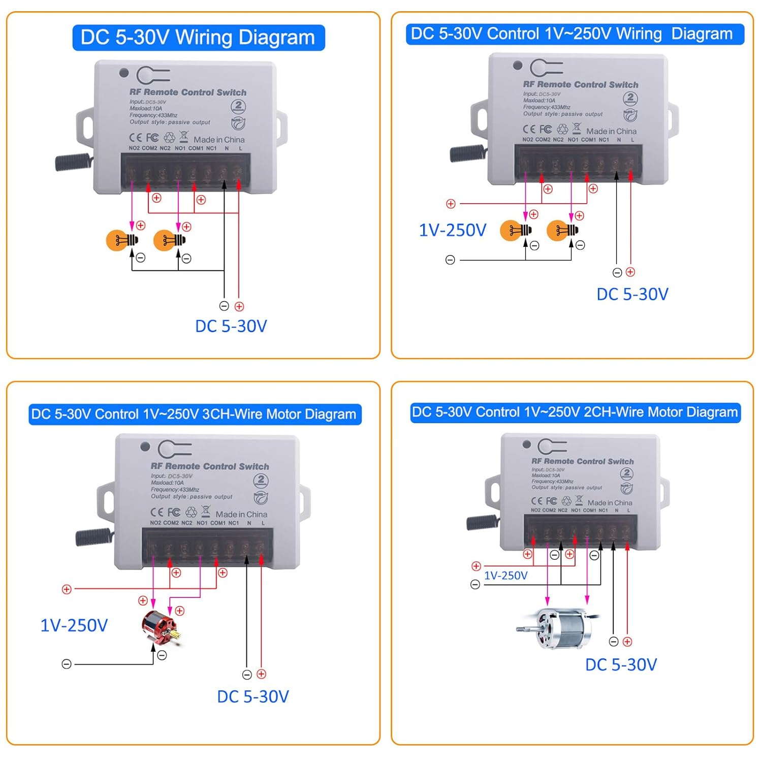 - đăSimplified circuit routing, Multi-function wiringăEach relay works independently, and each receiver and each transmitter can be multiple to be compatible. the relay of 3 terminals(normally open, common, normally closed) can be modified for multi-purpose circuits. So it can simplify circuit remote control and save wiring cost.