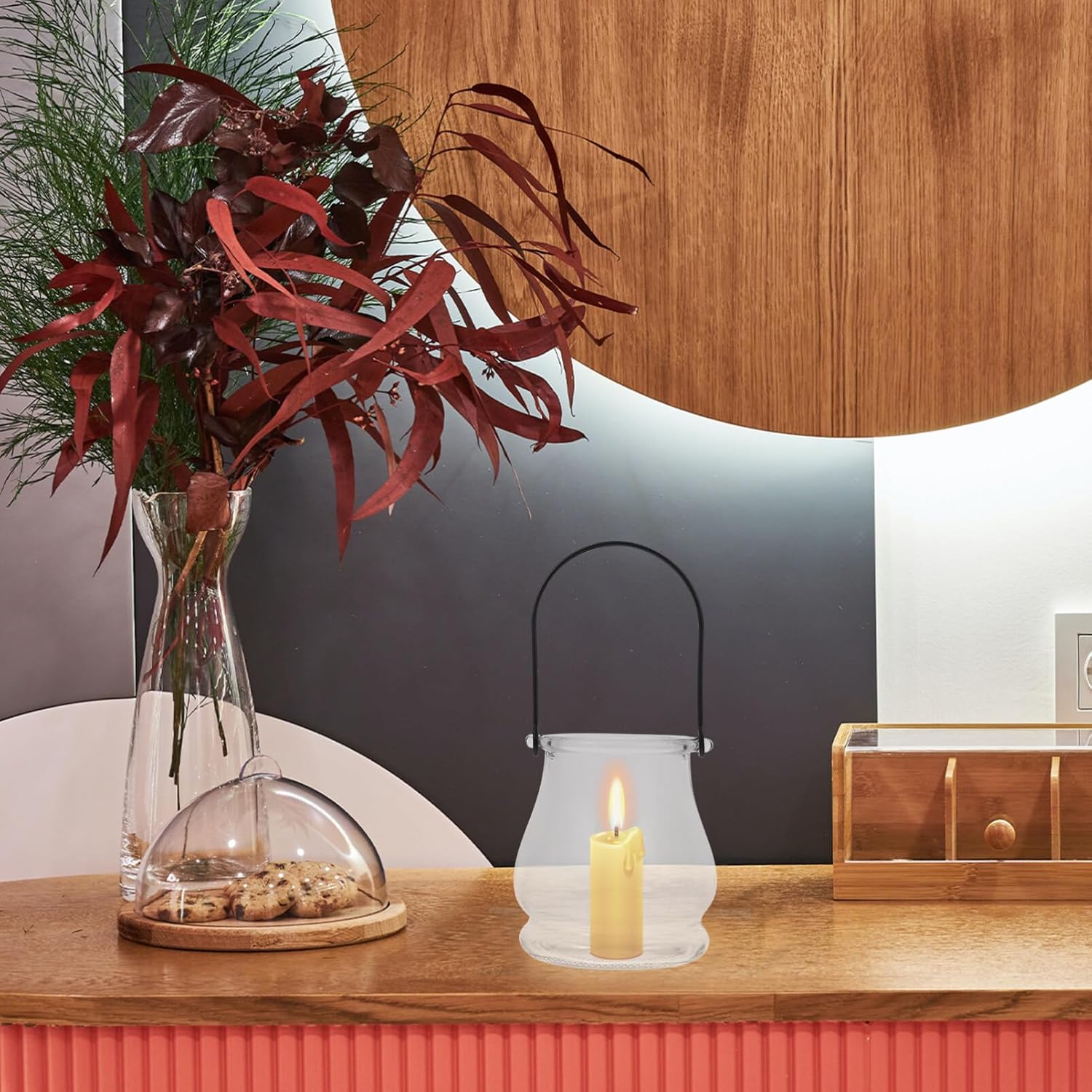 - Hanging Glass Candle Holder ---Hanging these glass terrarium globes indoors or outdoors, you can put tealights, led lights or small candles into them.