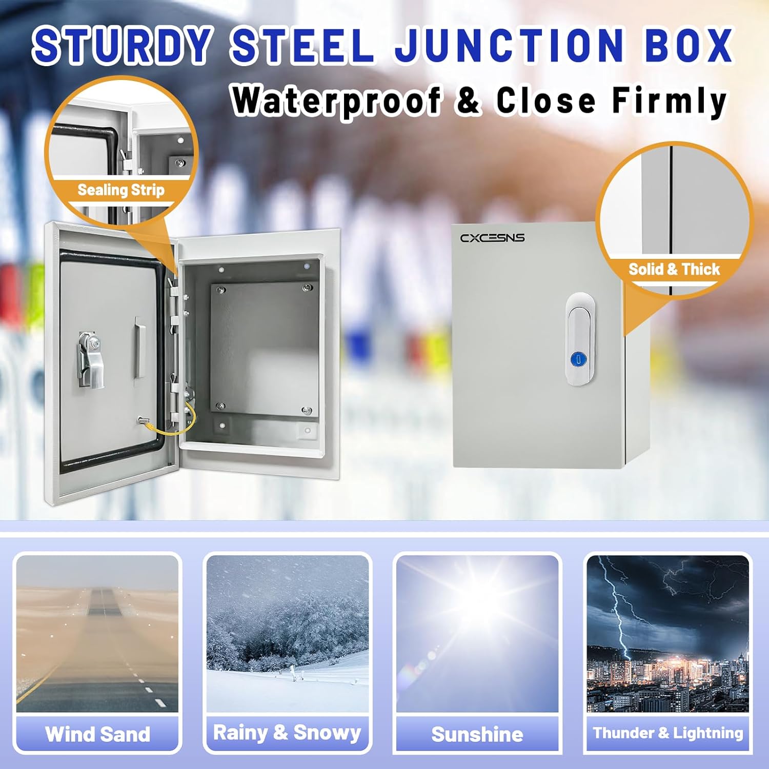- The electrical box is made of 1.5mm sturdy cold-rolled steel, which has been cut and precision welded to make it more durable and wear-resistant. The waterproof electrical box protects your safety through polishing and spraying treatment, and protects the equipment from the impact of harsh environments, prevent rusting and rainwater corrosion.