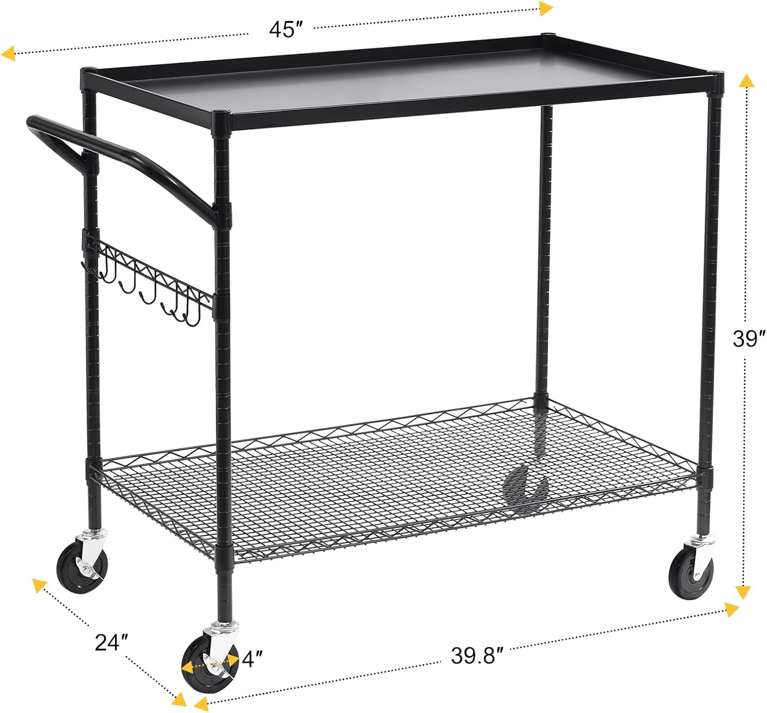 - Easy Assembly & Dimension & Satisfied Service : This durable rolling utility cart measures 24"D x 39.8"W x 39"H/ 24"D x 45"W x 39"H(with handle). Easy to assemble in 15 minutes, no tools required. We provide 90DAYS No-excuses refund & 3YEARS aftermarket service. Any questions about the utility carts with wheels please contact us,we will reply in 24Hours.