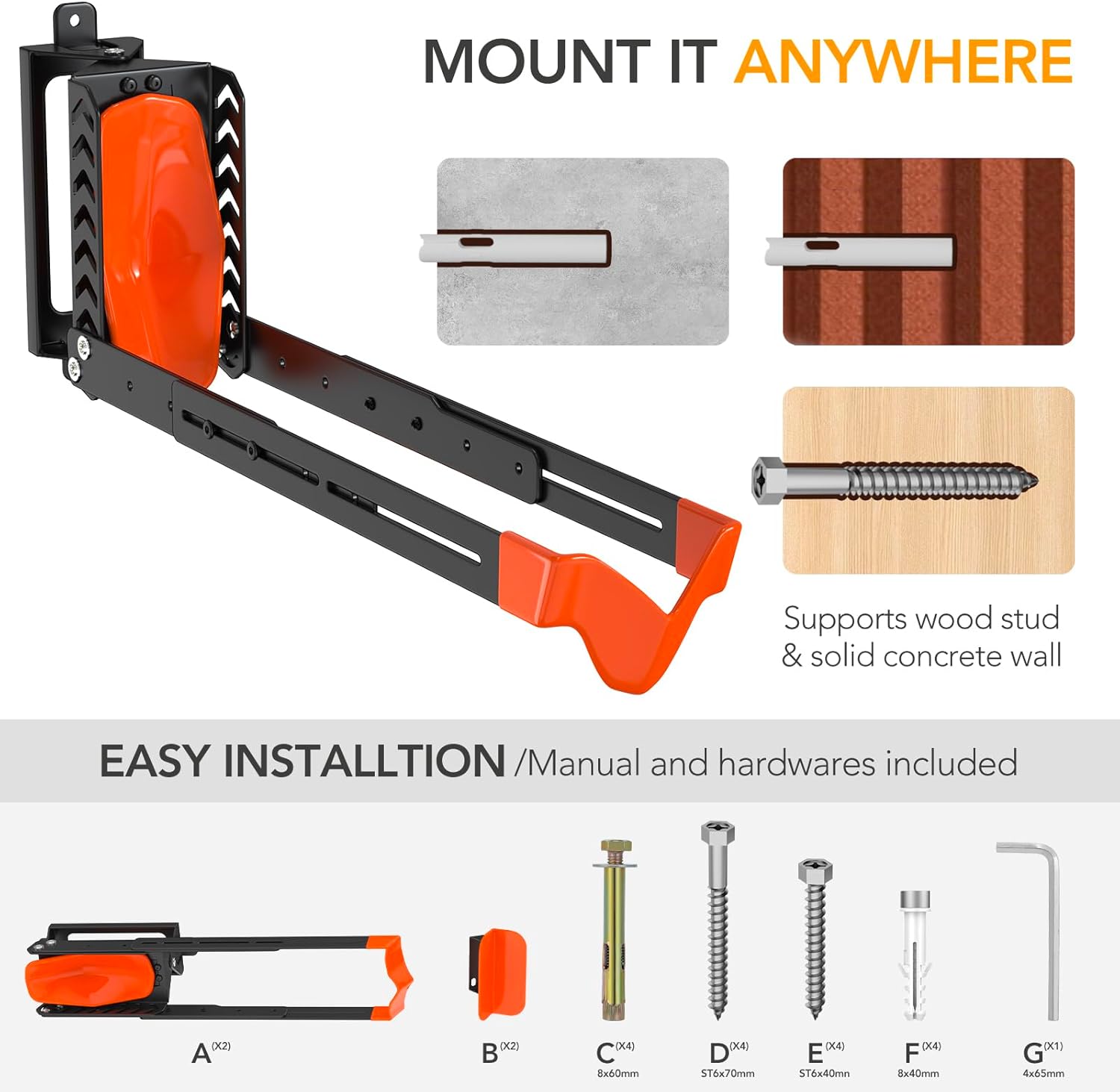 - Easy to Install:All necessary installation accessories and detailed instructions are included for hassle-free installation on wood, concrete walls.