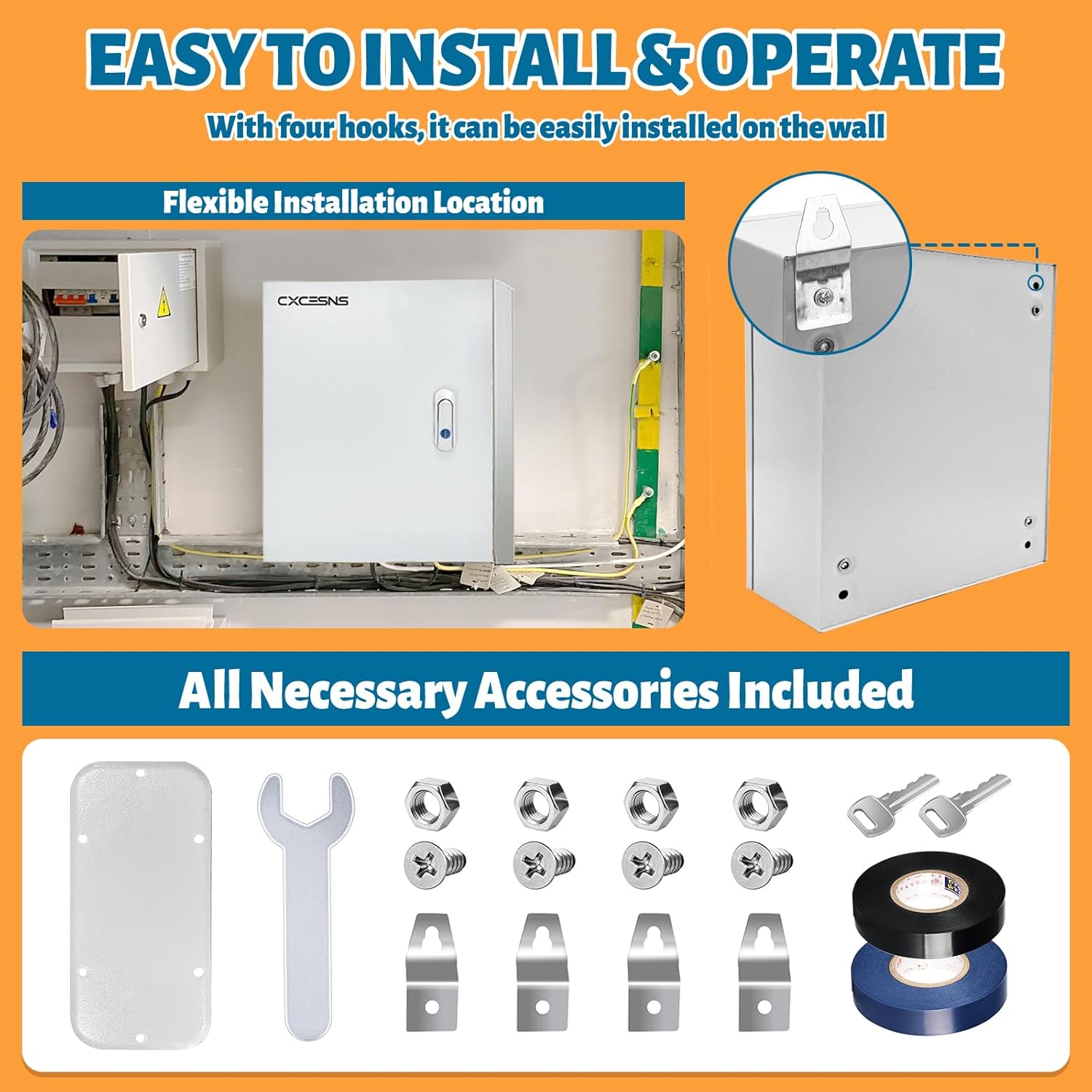 - The electrical box is made of 1.5mm sturdy cold-rolled steel, which has been cut and precision welded to make it more durable and wear-resistant. The waterproof electrical box protects your safety through polishing and spraying treatment, and protects the equipment from the impact of harsh environments, prevent rusting and rainwater corrosion.