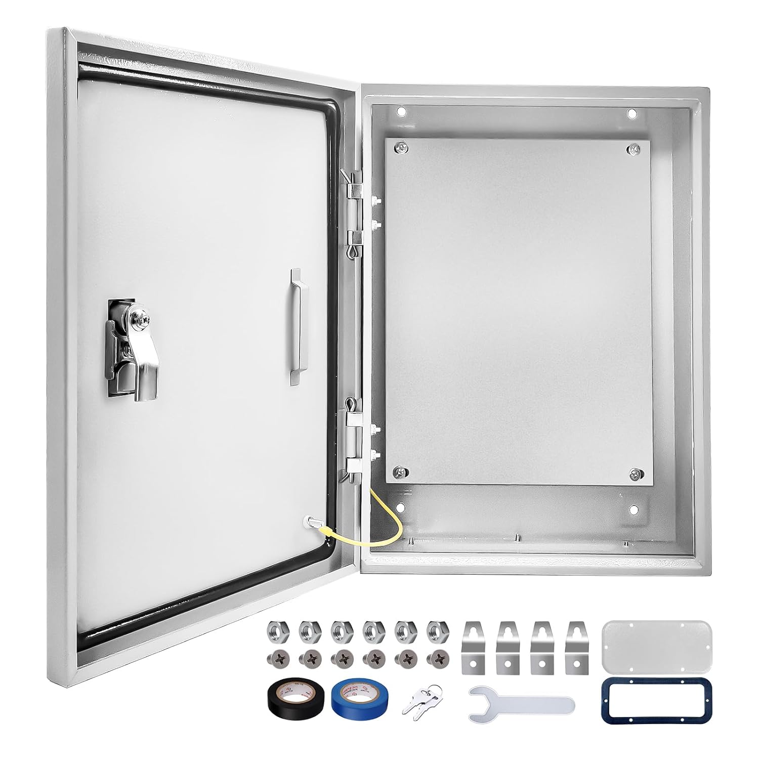 Outdoor Electrical Box 24 x 16 x 10''D NEMA 4X Enclosure Steel Box, Waterproof & Dustproof Outdoor/Indoor Lockable Electrical Junction Box, with Mounting Plate