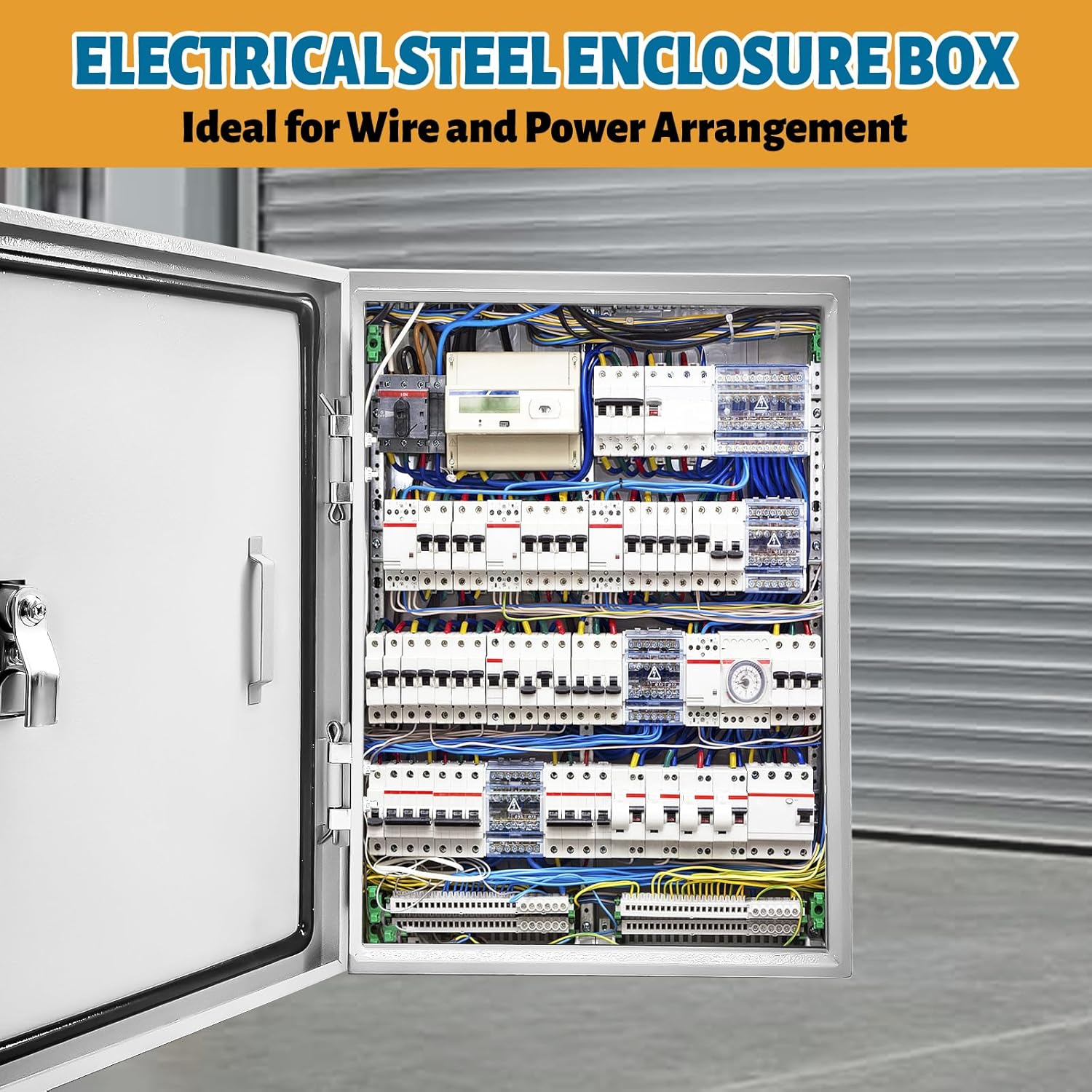 Outdoor Electrical Box 20 x 12 x 10''D NEMA 4X Enclosure Steel Box, Waterproof & Dustproof Outdoor/Indoor Lockable Electrical Junction Box, with Mounting Plate