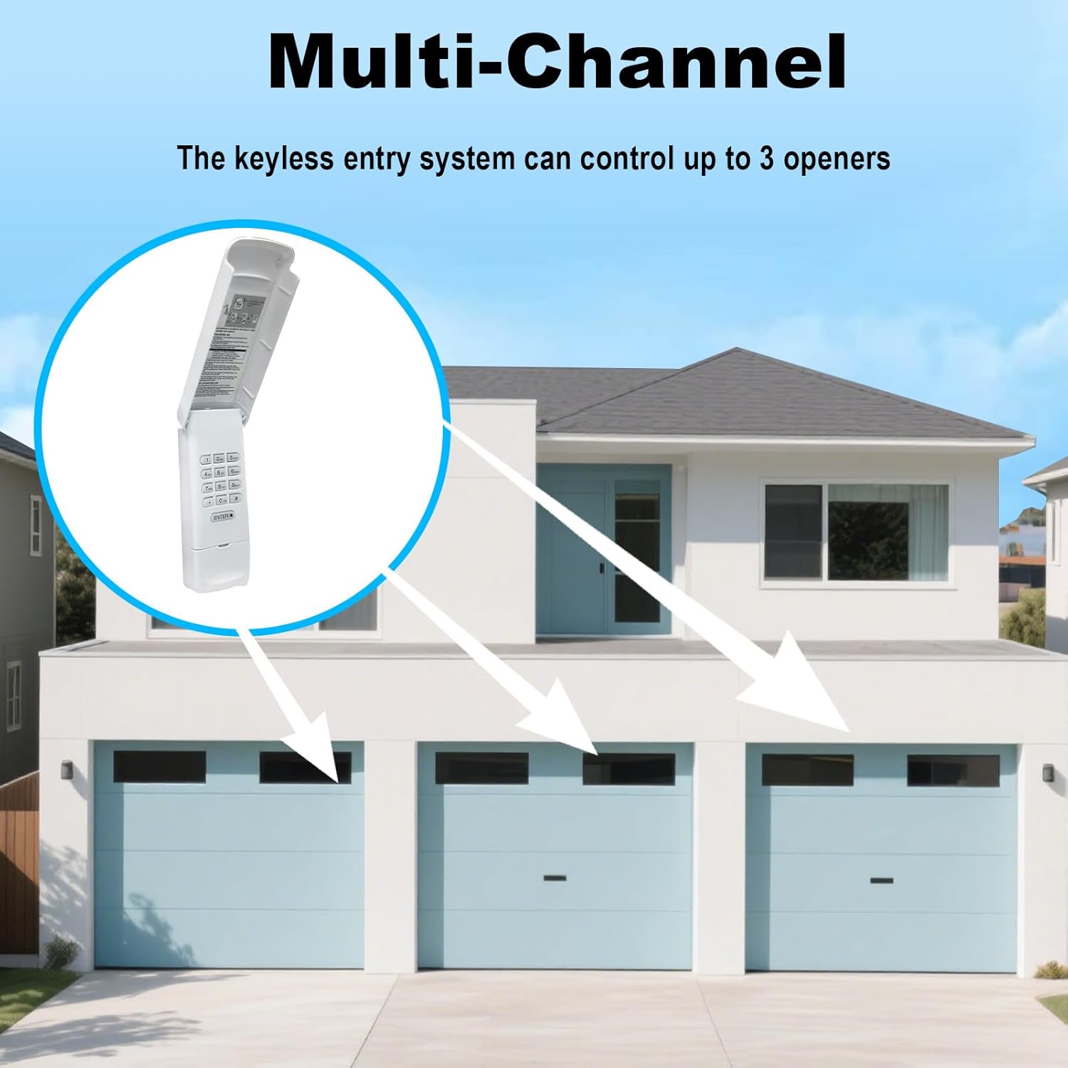 - 2.The keypad's keyless entry system support control up to 3 garage door openers.After easily completing programming within a few minutes, there is no need to carry keys when going out. Family members can also use it directly.
